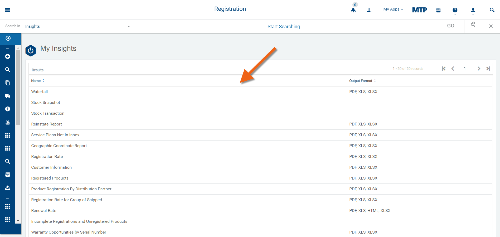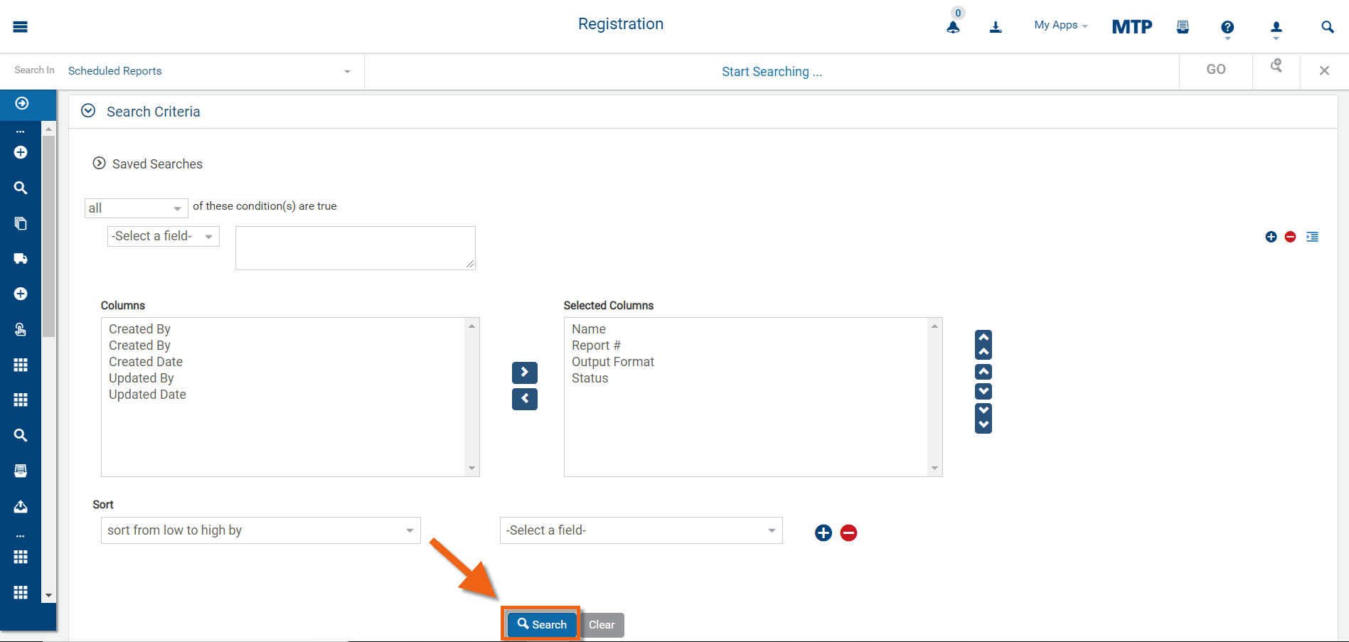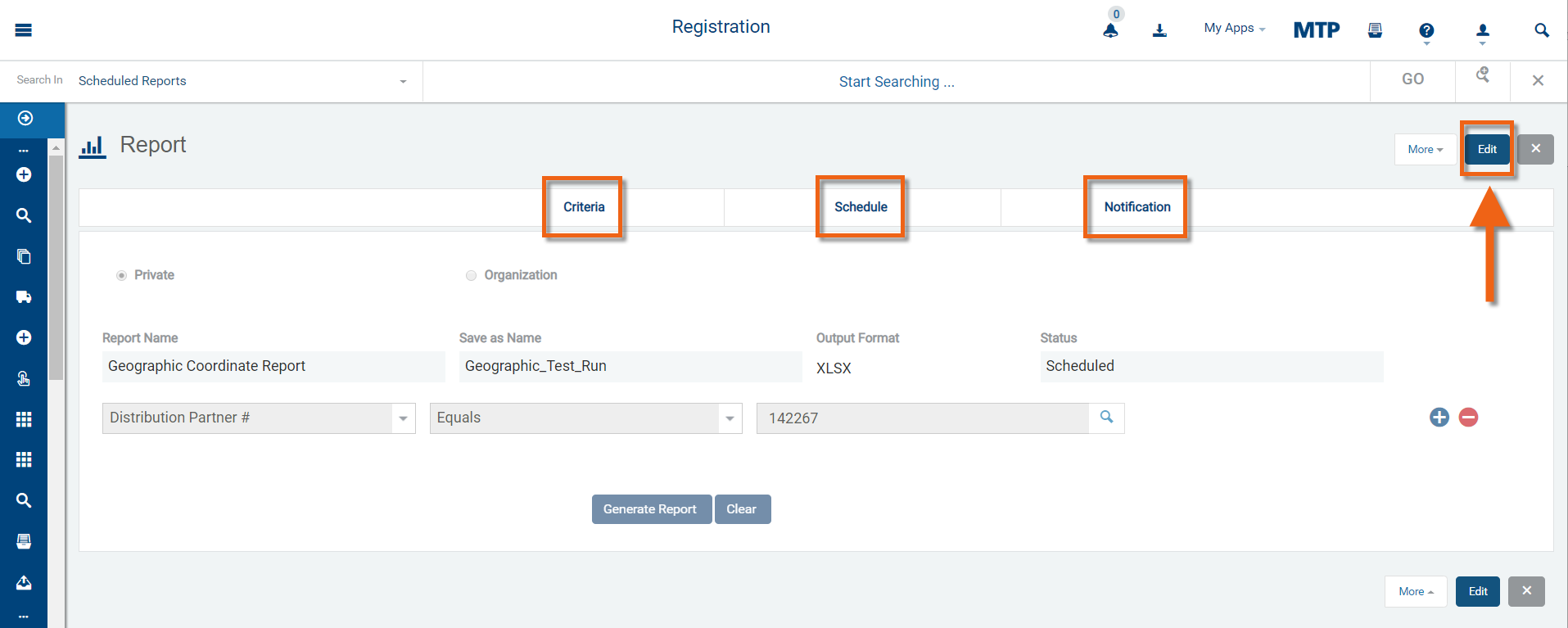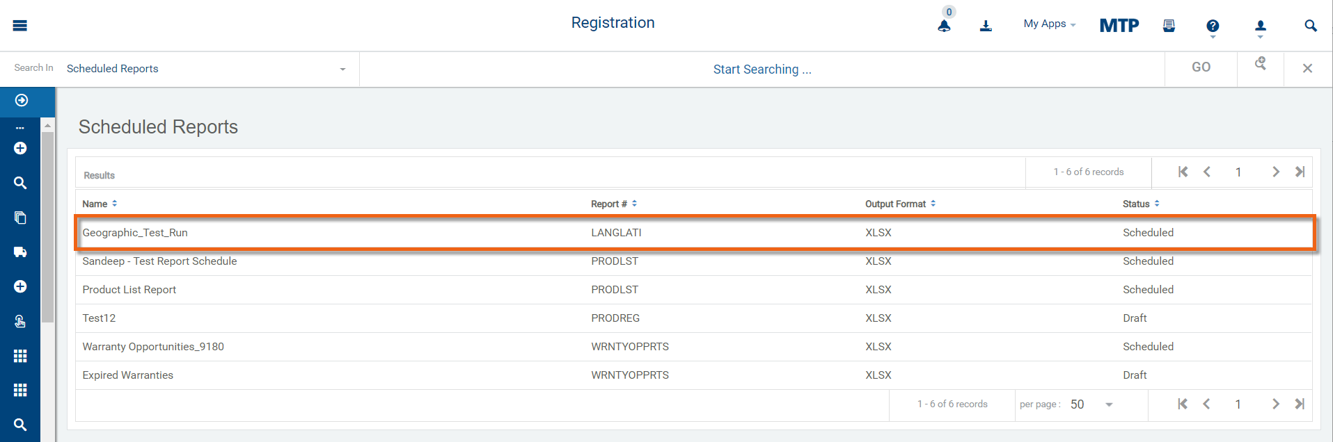 Select Scheduled Reports from the Registration sub panel.