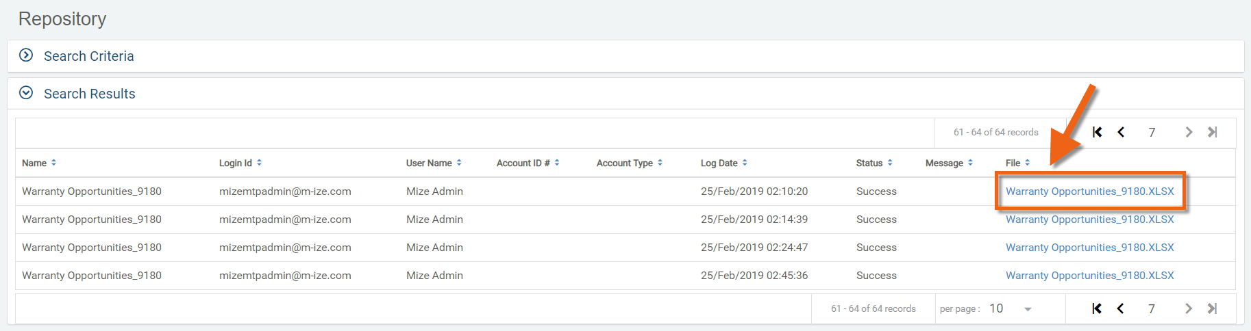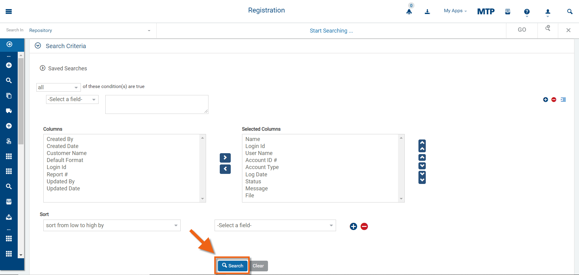 Click "Search", or add any additional criteria and then click "Search".